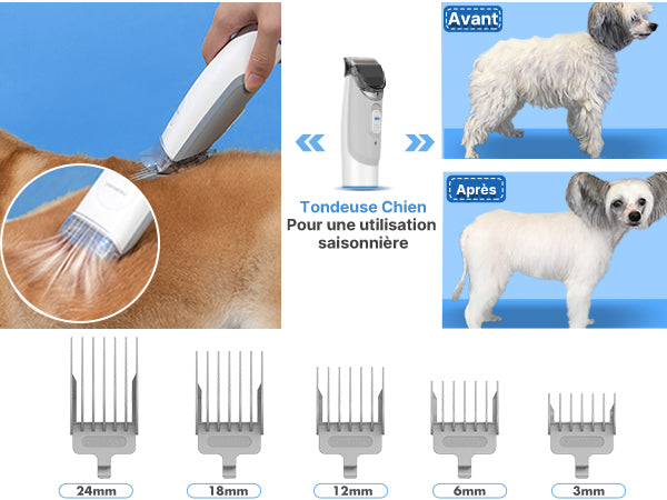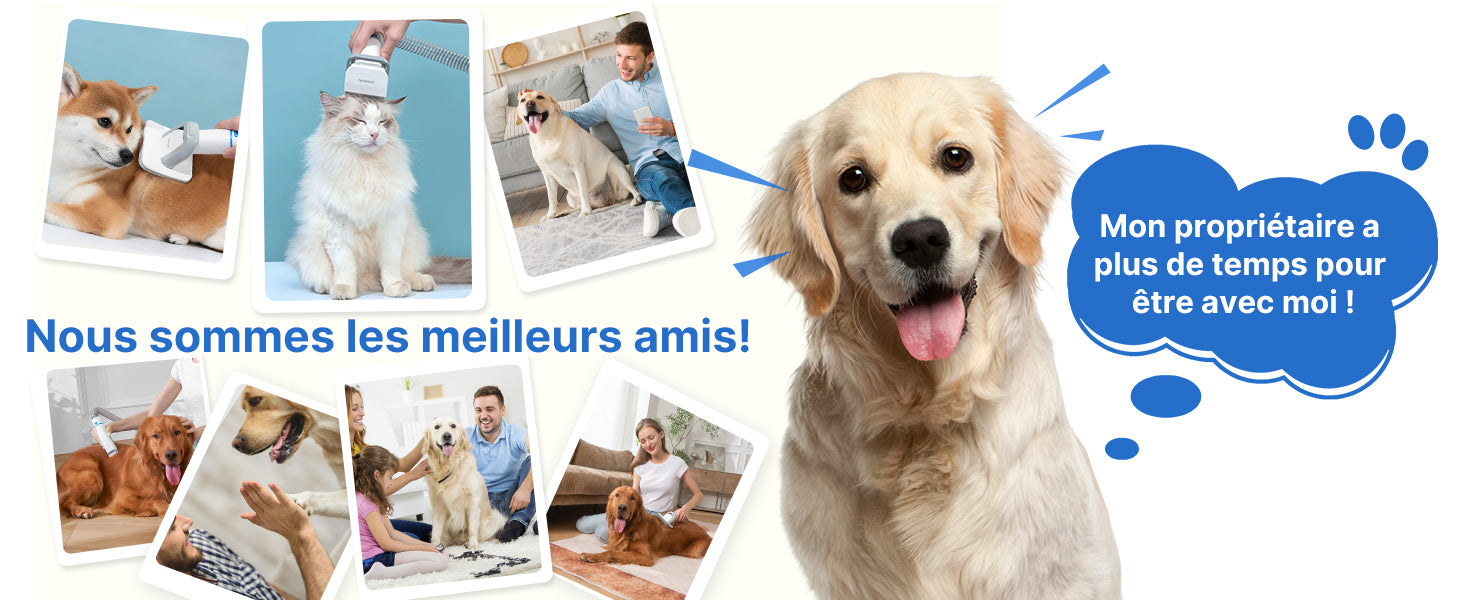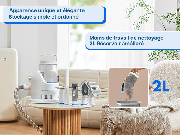Le bruit de l'aspirateur est réduit à 52dB en mode éco, offrant une expérience de toilettage plus calme et agréable pour votre animal.